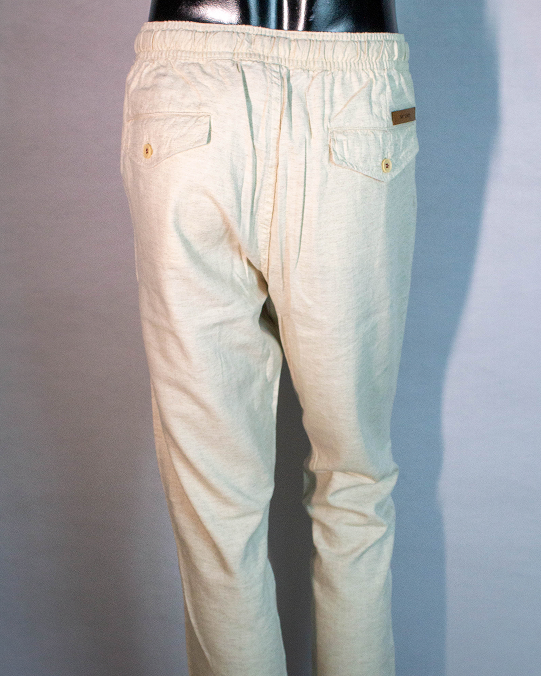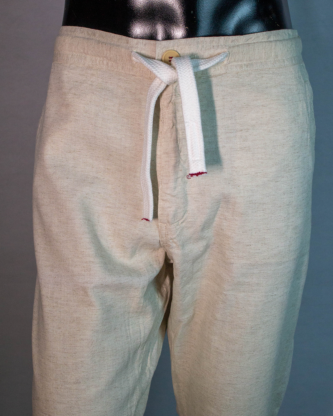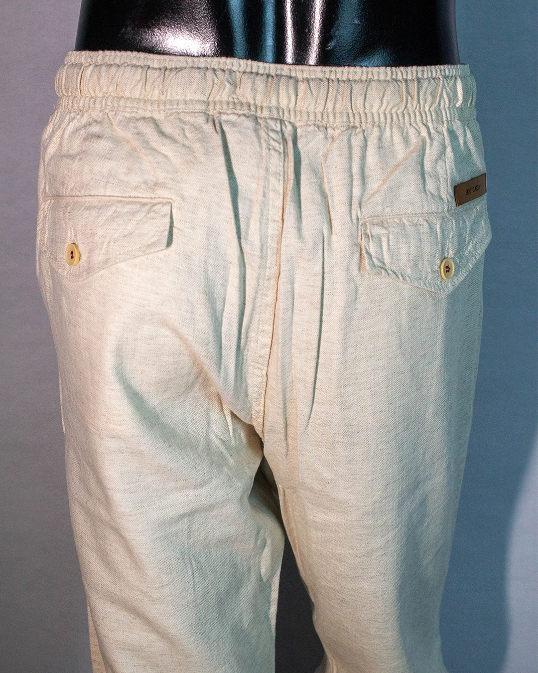 • Cintura: botão, elástico e cordão